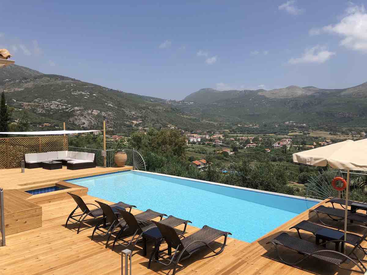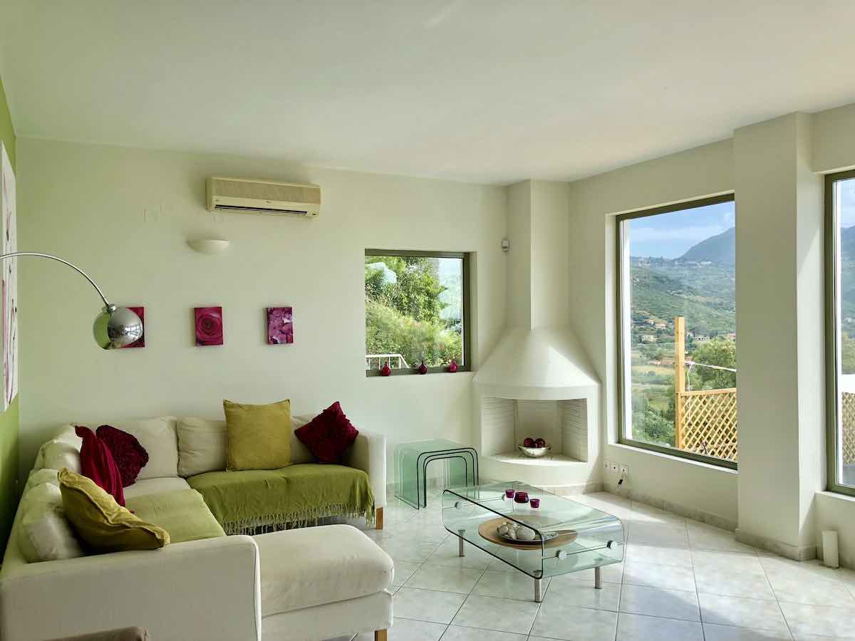 The holiday villa on Kefalonia portrays the qualities of beauty, comfort and function. Picture windows frame a view of mountains and ocean and the valley below. It is fully equipped to an exacting standard. There are finishing touches to create a `home from home` atmosphere. Special touches include complimentary wifi, and air conditioning throughout and also a complimentary welcome pack on arrival. There are crisp egyptian white cotton linen, egyptian cotton towels, contemporary crockery, champagne flutes and cocktail glasses, sleek cutlery, cafetiere, coffe machine espresso cups, picnic blankets and a cool box. A selection of DVDs, CD`s bluetooth music system, games and books, with a safe for valuables are all available for guests to use.